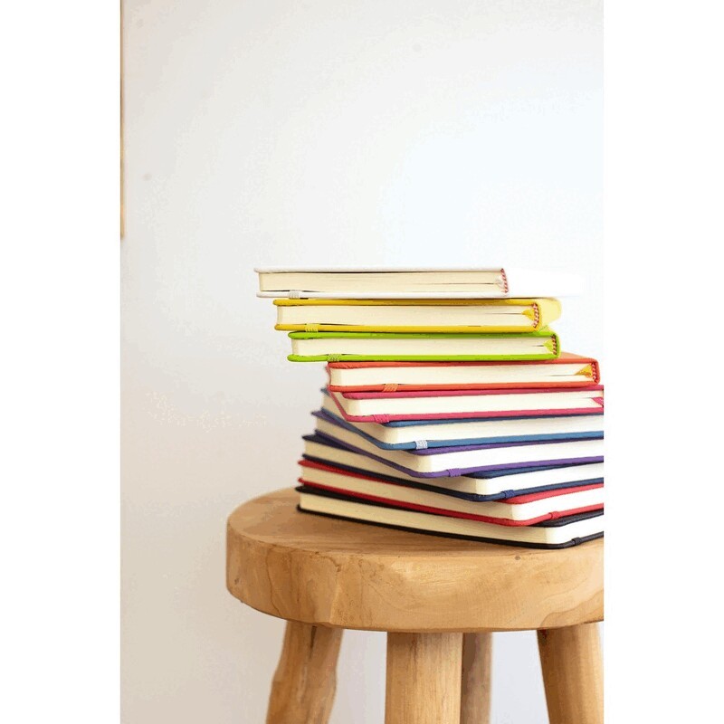 Notebook in approx. A5 size with 96 lined sheets (192 pages), bookmark ribbon for easy marking of the last page or important notes, an extra elastic band closure in matching colour, hard cover made from PU