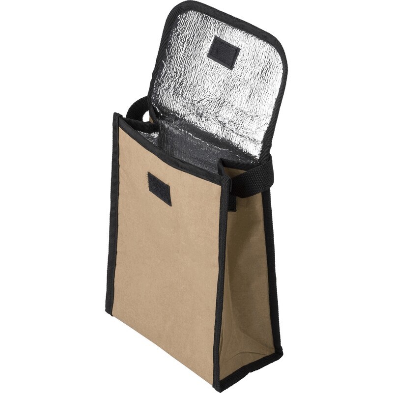 Paper cooler bag, aluminium interior, hook and loop closing, handle
