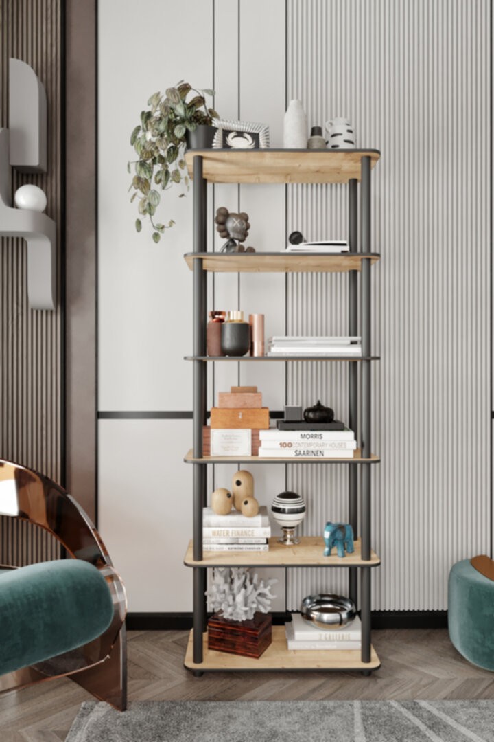 6 დონიანი თარო ფიჭვის ფაქტურით (30*60) (MS612)(ასაწყობ მდგომარეობაში)