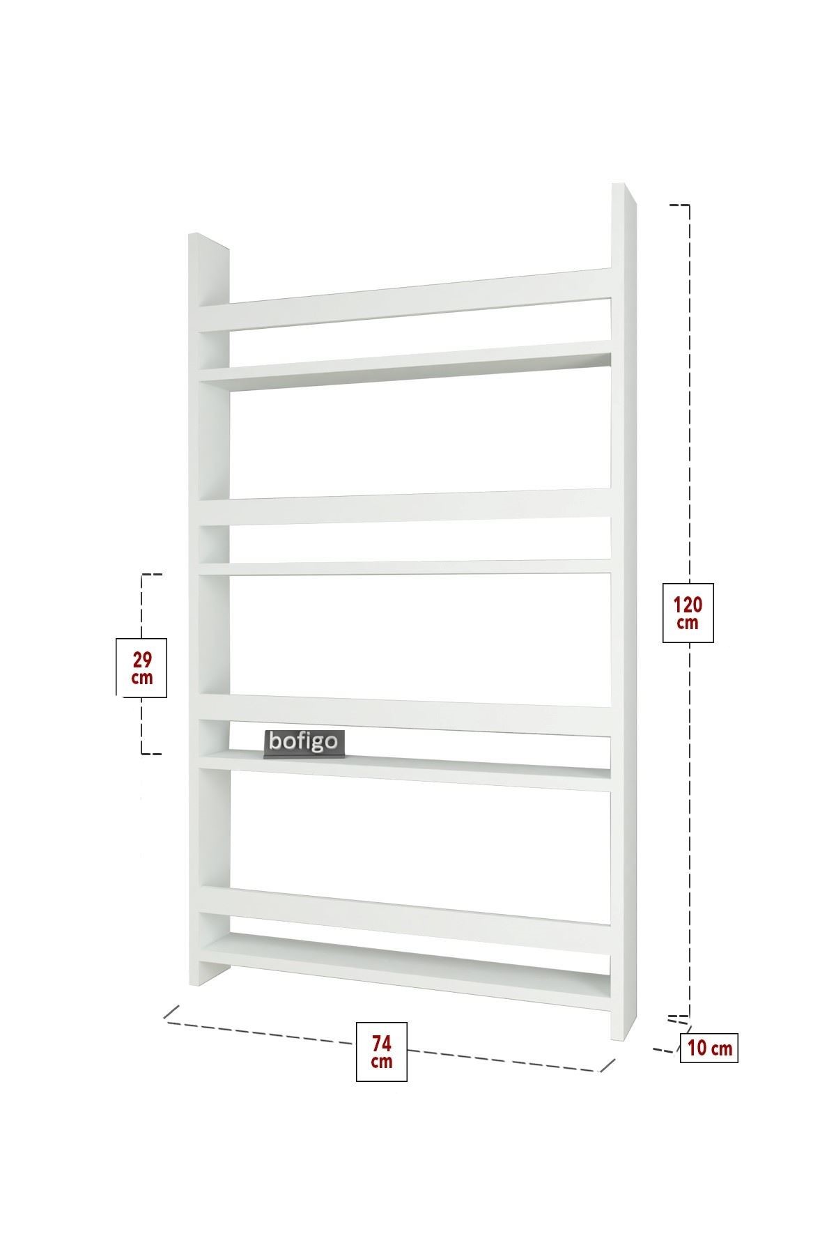 წიგნების 4-დონიანი კედლის თეთრი თარო (ასაწყობ მდგომარეობაში)