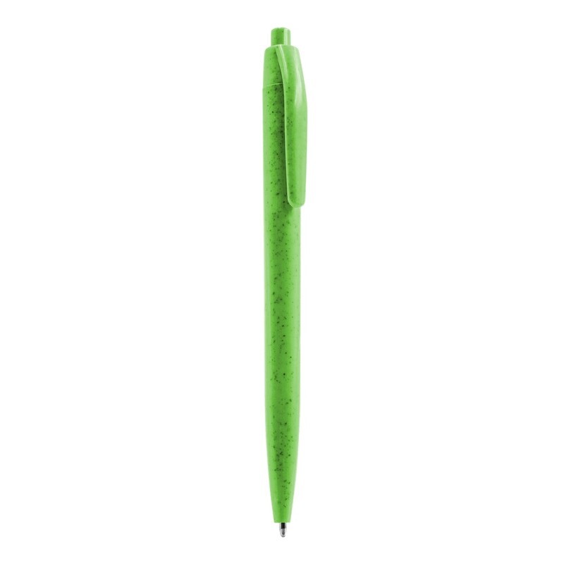 Ball pen with coloured barrel and clip in matching colour, writes in blue, product made from wheat straw and ABS