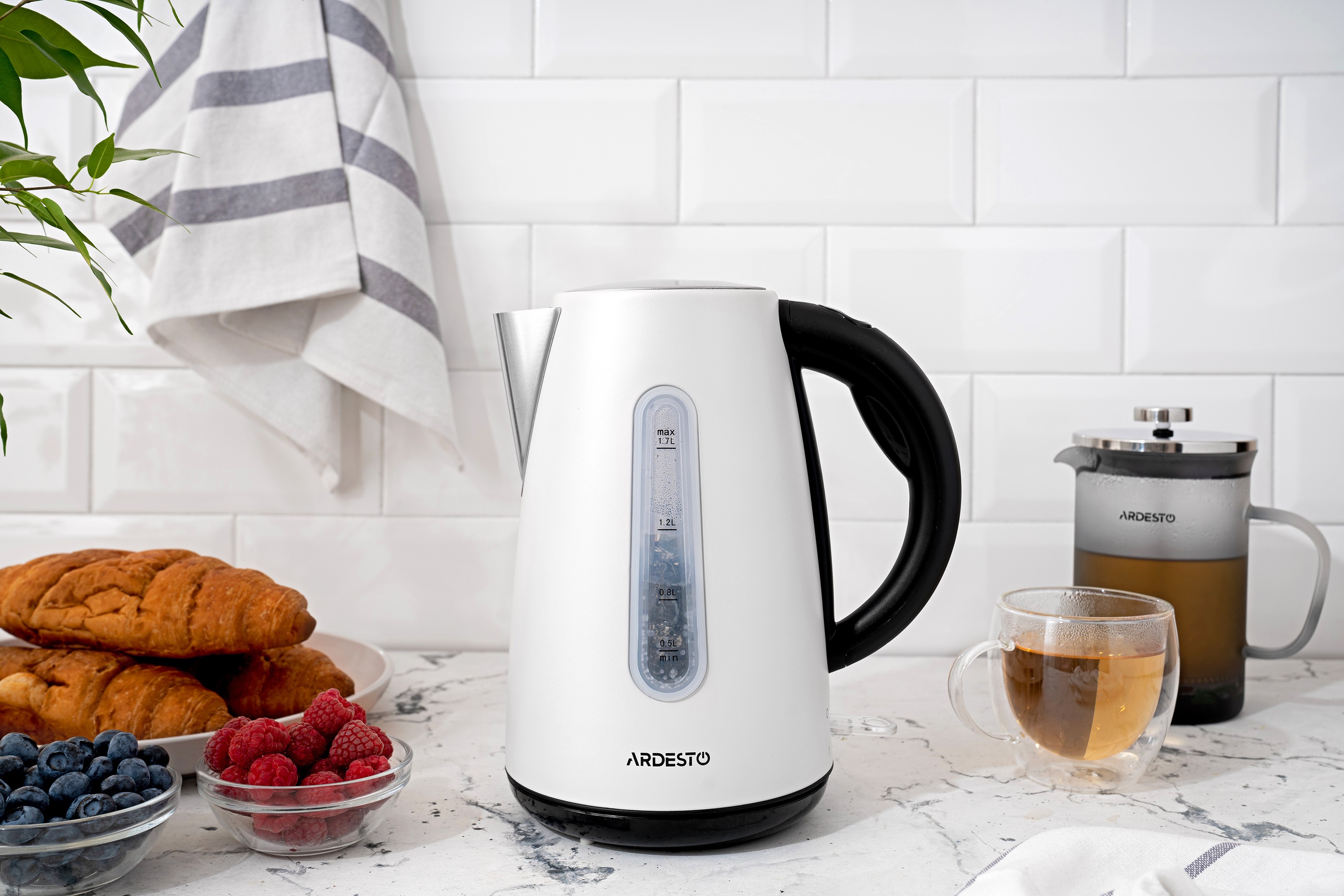 თეთრი ფერის მეტალის ელექტრო ჩაიდანი Strixcontroller-ით გადახურებისგან დასაცავად. ჩაიდანის EKL-F300W მოცულობა 1.7 ლიტრია, ხოლო სადგამი უზრუნველყოფს 360°-იან ბრუნვას. სადგამი, ძირი და სახელური დამზადებულია შავი პოლიკარბონატისგან. ჩაიდანის ძირითადი ნაწილი დამზადებულია შეღებილი ლითონისგან. მოცულობის ნიშნულები 0.5 ლიტრიდან 1.7 ლიტრამდე, აღჭურვილია განათებით.