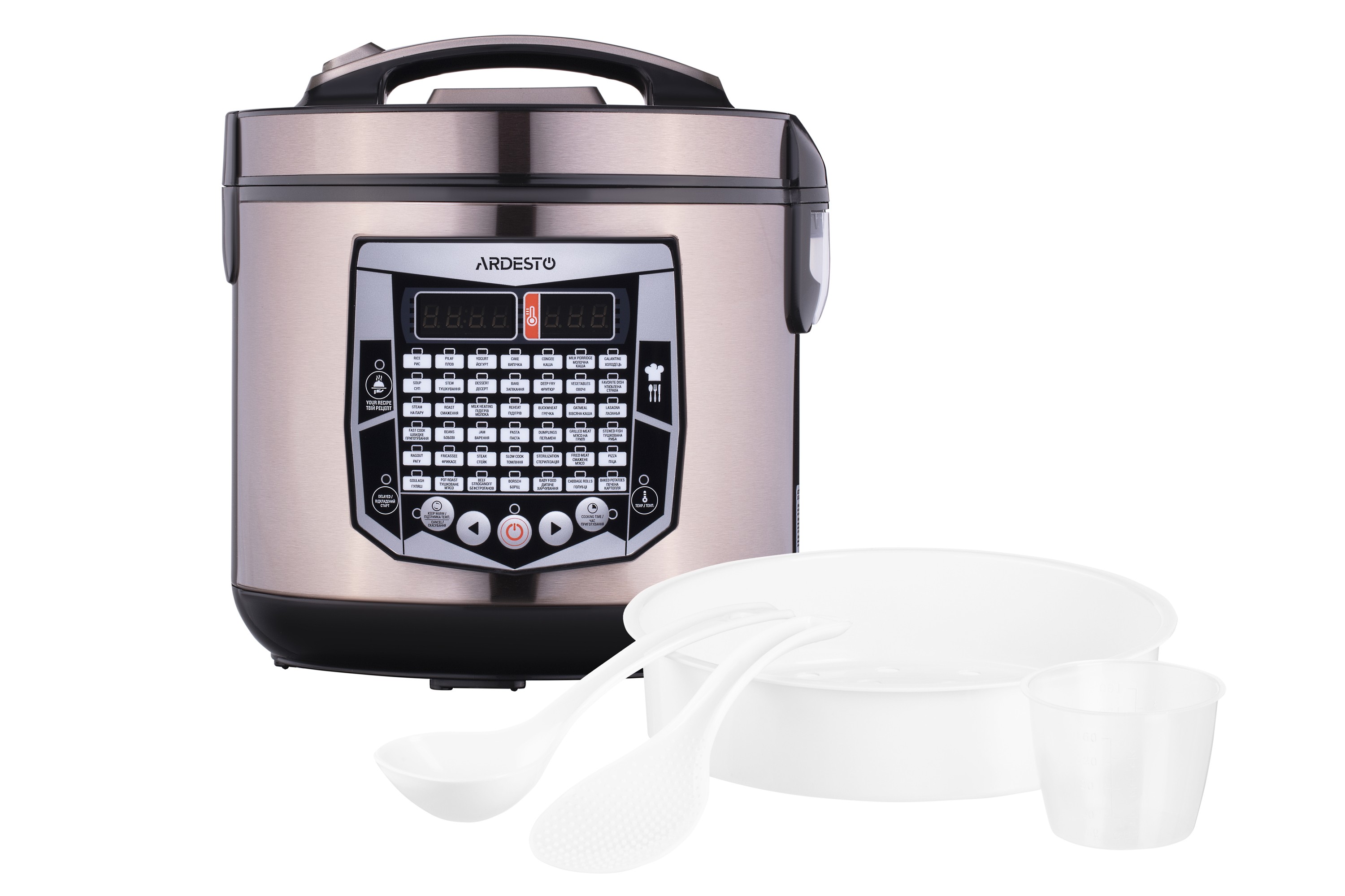 მულტისახარში 4 ლიტრიანი თასით, LED დისპლეით, დაგვიანებული ჩართვისა და ავტომატური გათბობის ფუნქციებით, ასევე 45 ავტომატური მომზადების პროგრამით, ყველა გემოვნებას დააკმაყოფილებს. MC-X45CH მულტისახარშის კორპუსის ლითონის საფარი დამზადებულია შამპანურის ფერში და ბაძავს გაპრიალებული ფოლადის ტექსტურას, სპეციალური ღილაკით, რომელიც მოსახერხებელია მულტისახარშის სახურავის გასახსნელად. ერგონომიული მართვის პანელი აღჭურვილია LED დისპლეით, ასევე არის ჰერმეტული სარქველი და სპეციალური ავზი ორთქლის მოსაშორებლად და კონდენსატის შესაგროვებლად, რომლებიც წარმოიქმნება მომზადების პროცესში. ალუმინის თასის შიდა ზედაპირი დაფარულია გამძლე არაწებოვანი კერამიკული საფარით, რომელიც მომხმარებელს მრავალი წლის განმავლობაში მოემსახურება.