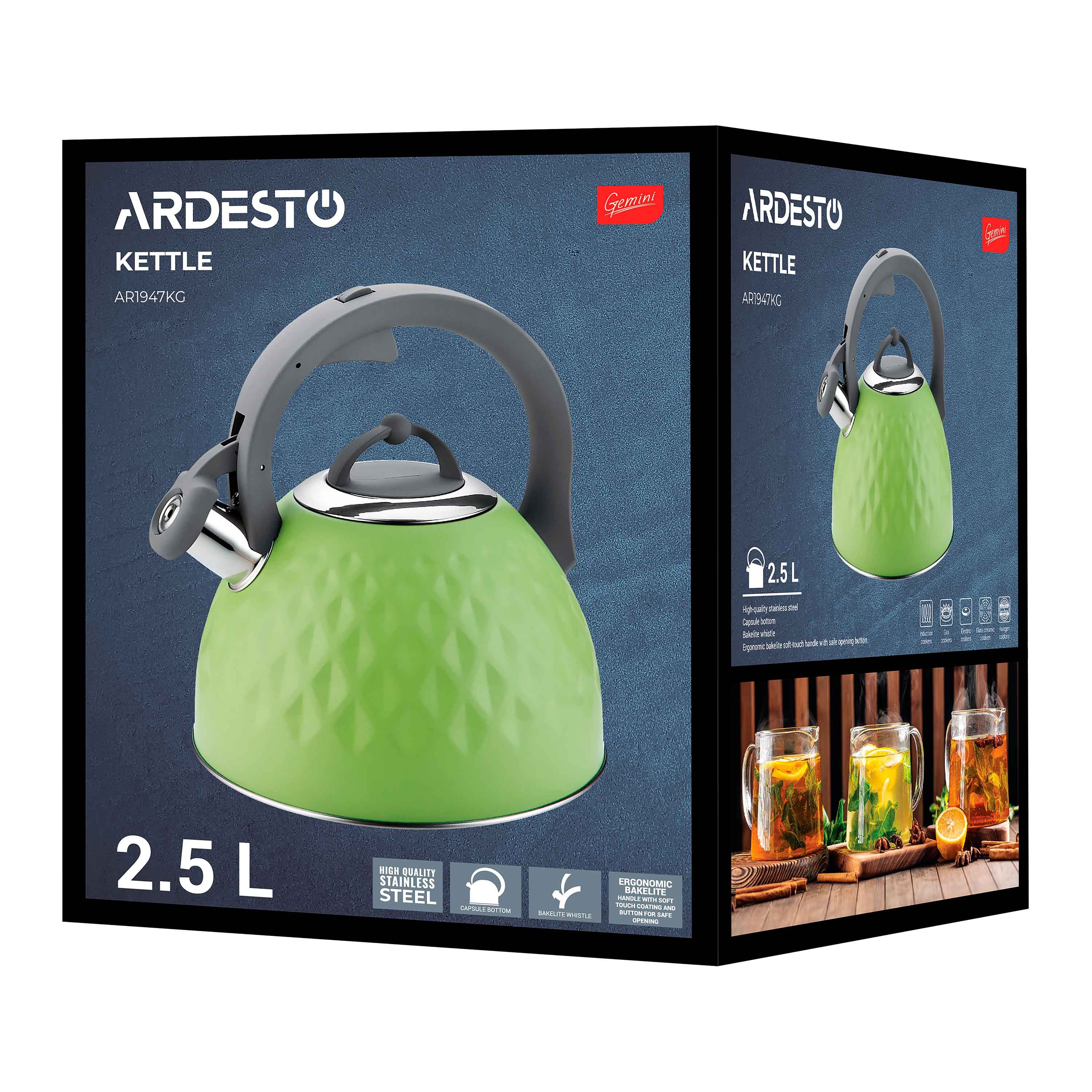 ჩაიდანი "Ardesto" 2.5 ლ; უჟანგავი ფოლადი, სალათისფერი. სერია Gemini