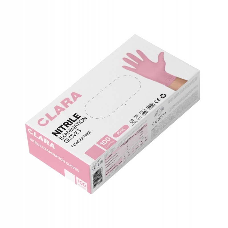 NITRILE GLOVES, POWDER FREE, CLARA, PINK, SIZE L, 100PCS