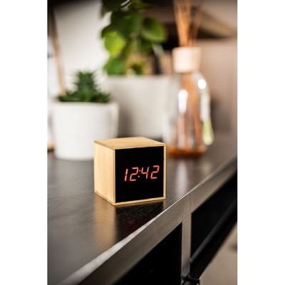 ელეგანტური და ეკომეგობრული ბამბუკის მაგიდის საათი LCD ეკრანით. მუშაობს USB კაბელით (კომპლექტშია) ან დროებით – 3 AAA ელემენტით (არ მოყვება). CR2032 ელემენტი (კომპლექტშია) ინახავს პარამეტრებს მაშინაც კი, როცა საათი გამორთულია. ფუნქციები: დრო, თარიღი, ტემპერატურა და 3 სხვადასხვა დროისთვის დასაყენებელი სიგნალი. იდეალურია თანამედროვე სამუშაო ან სახლის სივრცისთვის.