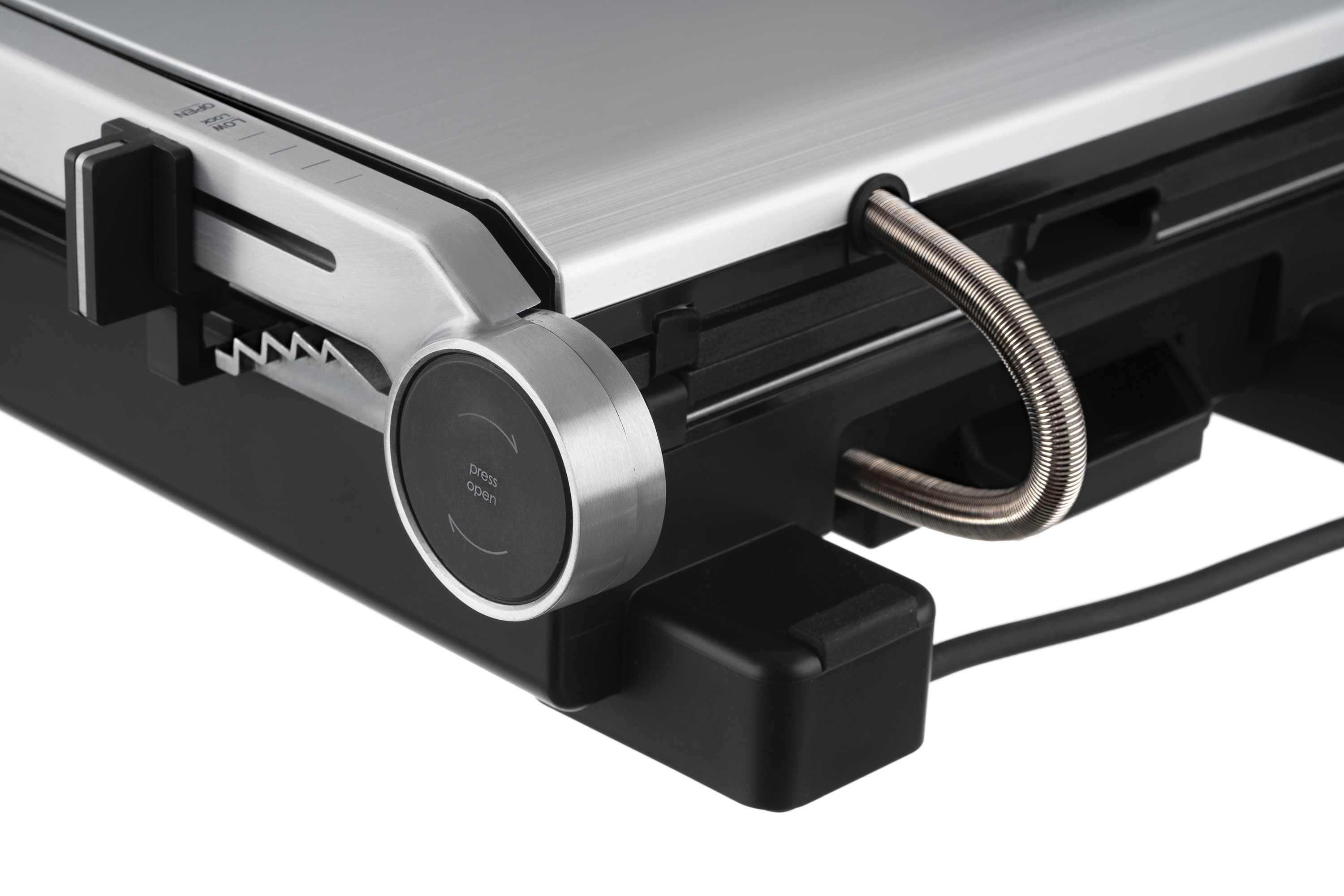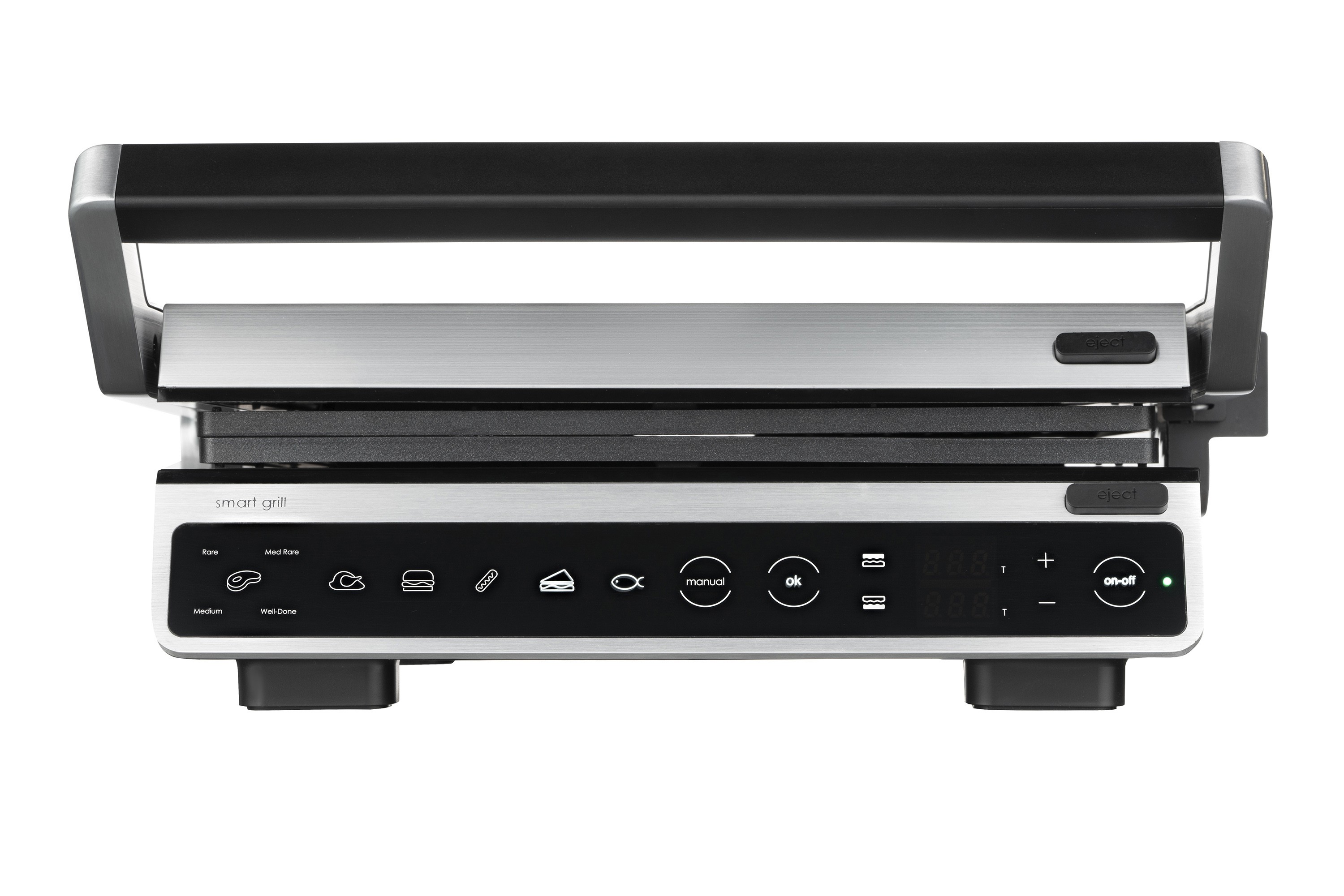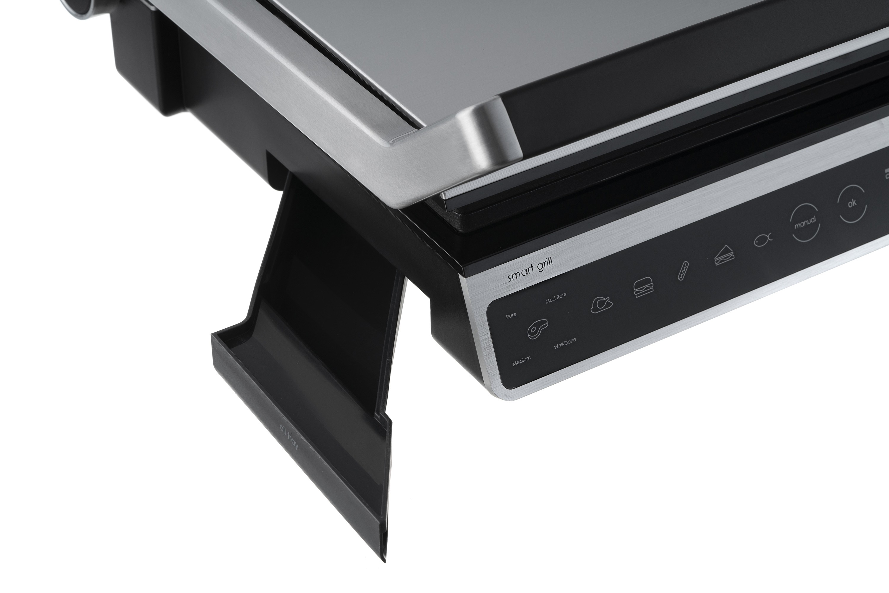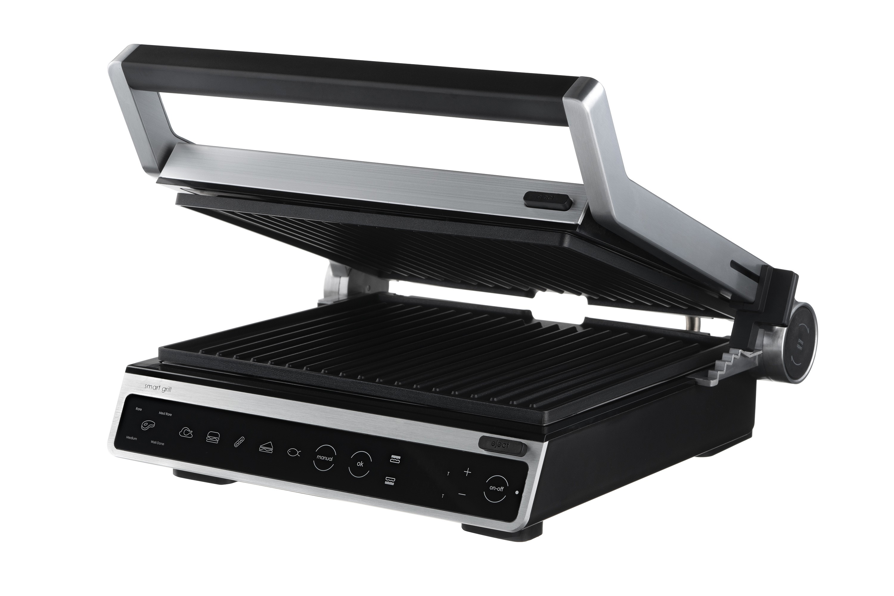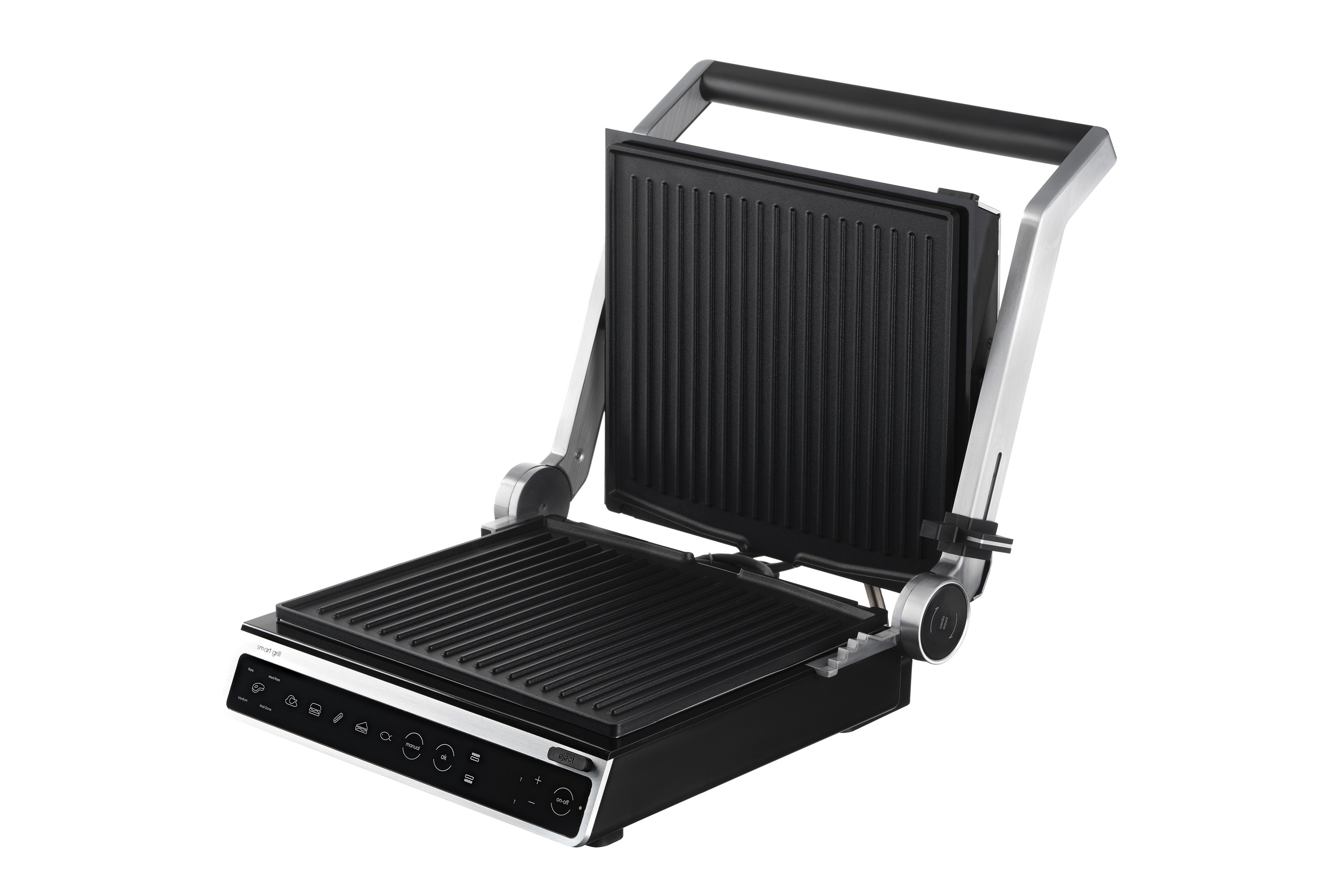 2000 ვატიანი ელექტრო გრილი, სენსორული კონტროლით, ექვსი ავტომატური მომზადების რეჟიმით, ტემპერატურის, შეწვისა და მზადყოფნის კონტროლით, ასევე პროდუქტის სისქის ავტომატური განსაზღვრით. გრილის ფირფიტების სრული გახსნა საშუალებას იძლევა ერთდროულად გამოიყენოთ ორივე ზედაპირი, ასევე იძლევა თითოეული ფირფიტისთვის ცალკე ტემპერატურის დაყენების შესაძლებლობას. მოსახსნელი არაწებოვანი საფარით დაფარული ფირფიტები და ცხიმისა და სხვა ნარჩენების შესაგროვებელი უჯრა მოწყობილობის გაწმენდასა და რეცხვას მოსახერხებელსა და მარტივს ხდის.