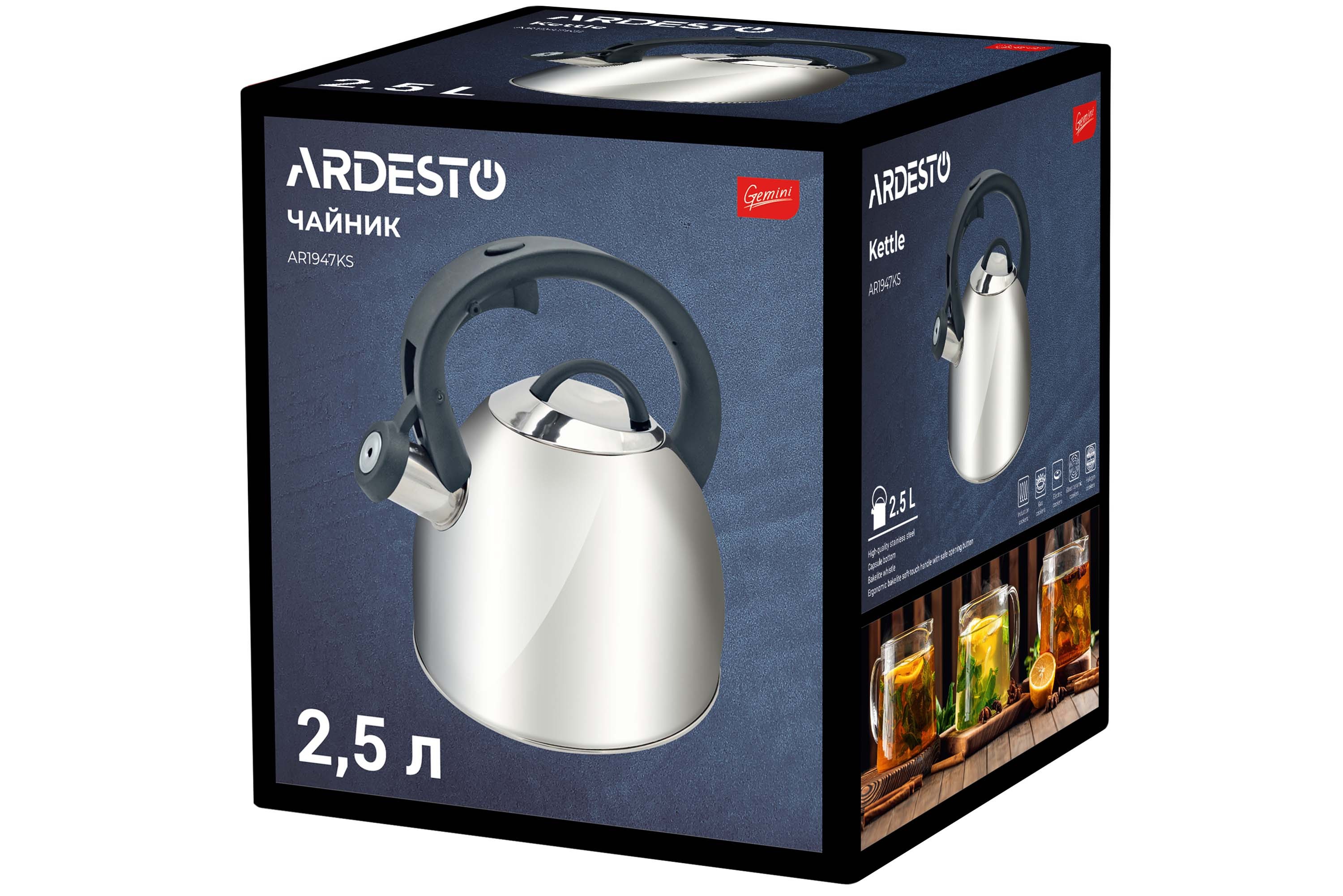 ჩაიდანი "Ardesto" 2.5ლ, უჟანგავი ფოლადი. სერია Gemini Cremona