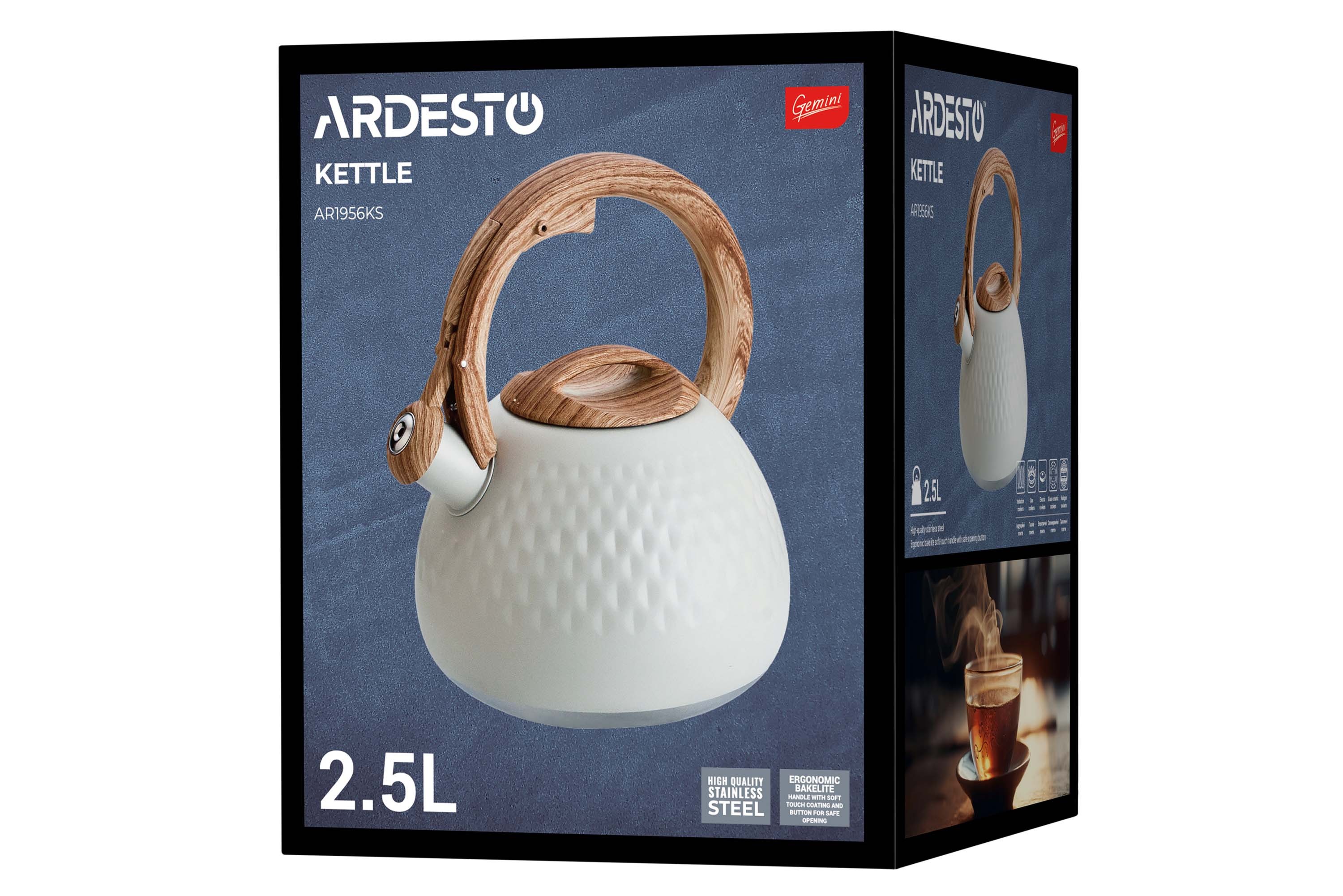 ჩაიდანი "Ardesto" 2.5 ლ; უჟანგავი ფოლადი, კრემისფერი. სერია Gemini